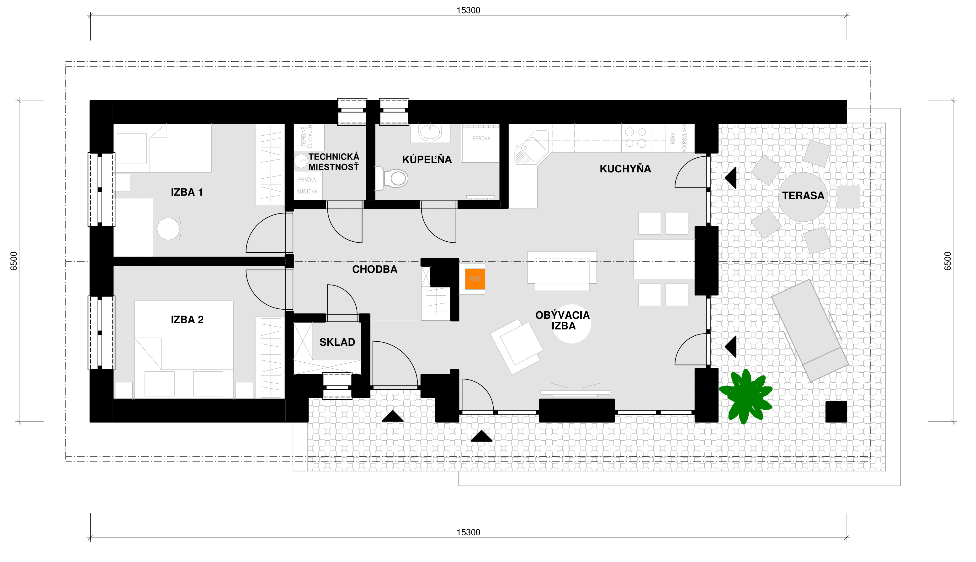 | STRECHA | sedlová strecha, sklon 25 stupňov |